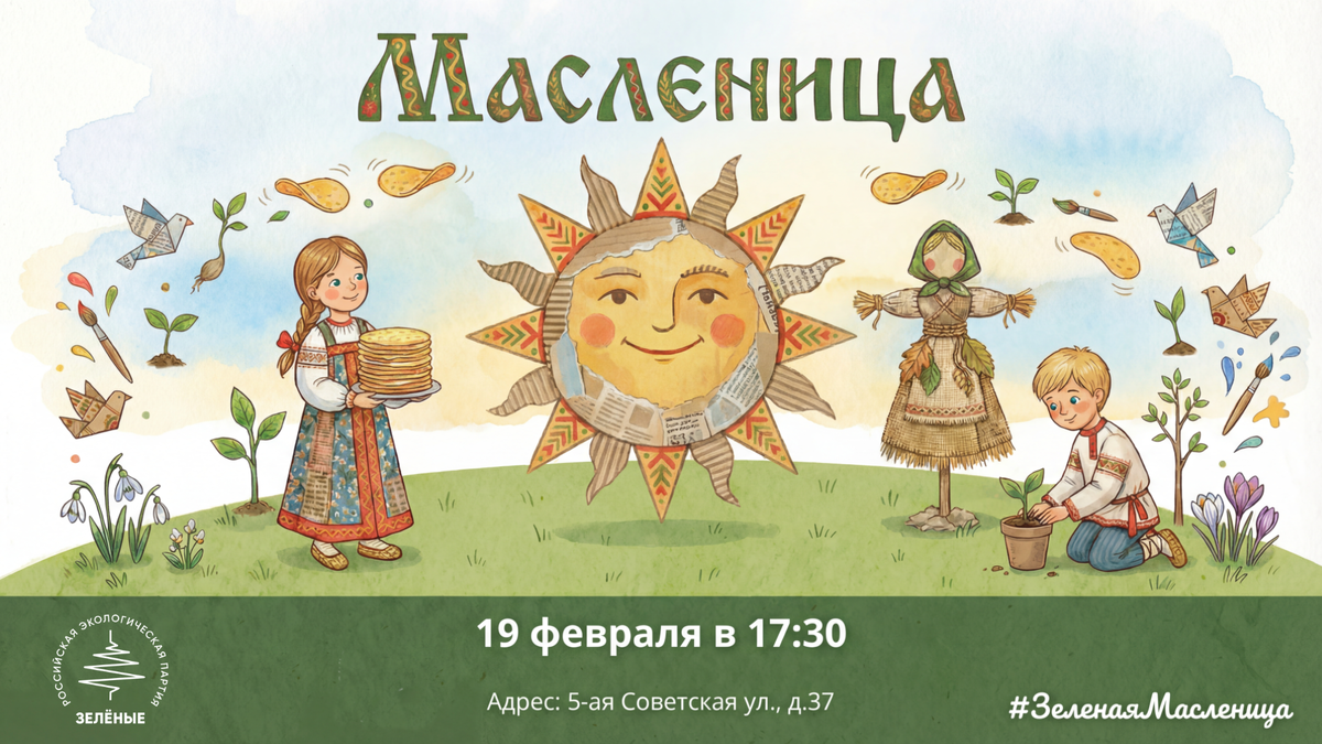Весна уже на пороге, и мы приглашаем вас встретить её правильно — с песнями, частушками и заботой о природе. На один вечер офис регионального отделения партии «Зелёные» в Петербурге превращается в миниатюру площади, где традиции встречаются с экологичным образом жизни. Вместо пластика — дерево и лыко, вместо фастфуда — домашний блин-бар. Программа «Зелёной Масленицы»*: Мастер-класс «Оберег из лыка» Смастерим домашнюю куклу-Масленицу из натуральных материалов. Мастер-класс «Ангел в технике макраме» Сплетём нежного ангелочка из вощеного шнура. Узлы макраме успокаивают нервы, а результат станет стильным украшением для дома или офисного эко-уголка. Детский мастер-класс «Солнышко ясное» Вместе с нашими маленькими гостями создадим яркую поделку, которая растопит остатки снега. Мастер-класс по созданию сырной тарелки от «ДревоШоу»** Учимся работать с деревом и создаем стильную тарелку для подачи сыров и фруктов. Это не просто МК, а готовый аксессуар для ваших будущих застолий. Все материалы п
