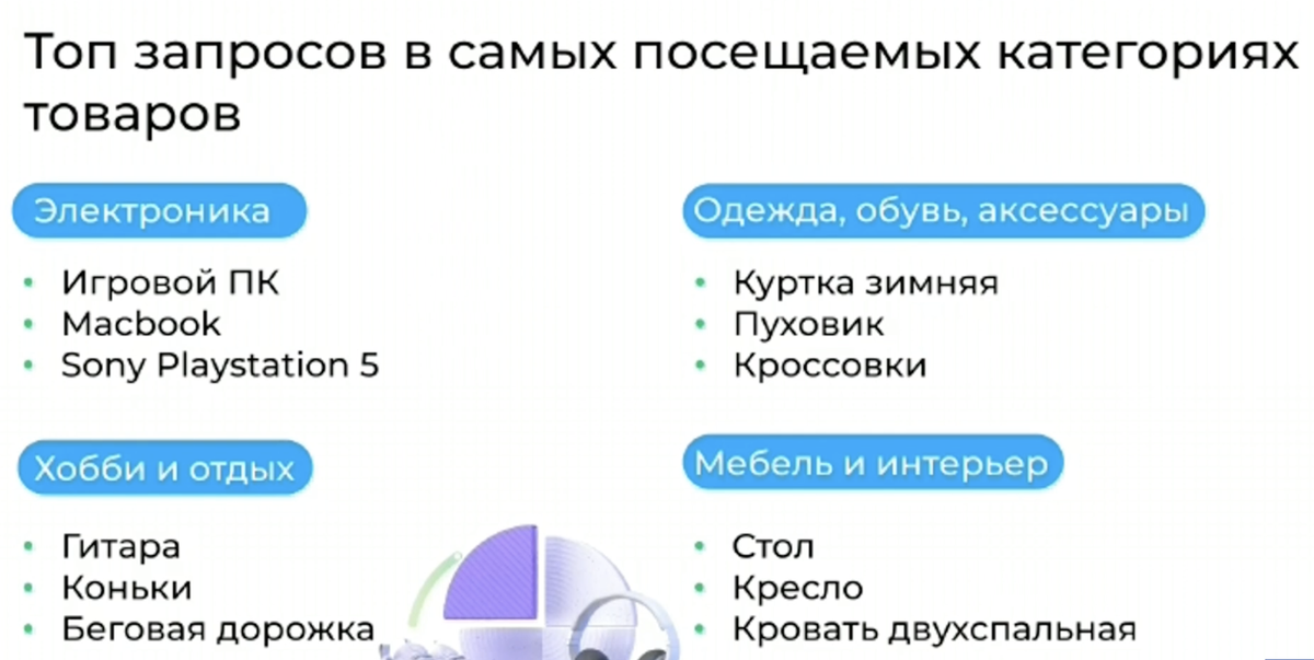 Самые посещаемые категории товаров — это электроника, хобби и отдых, одежда с обувью, товары для дома и детские товары. Если планируете адаптировать названия объявлений под топ поисковых запросов, эти данные помогут повысить вероятность покупки.