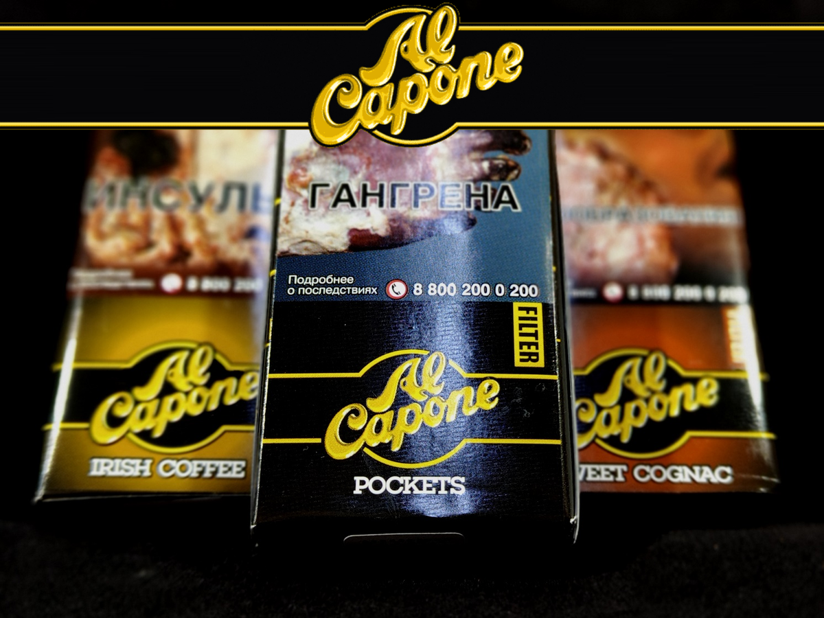 Несмотря на тот абзац, который творится вокруг нас, приятные новости тоже имеют быть: Сигариллы Al Capone представлены в международном формате Pocket размером 68х8 миллиметров в пачках по 10 штук и в трех вкусовых видах: Sweet Cognac, Irish Coffee и классический Pocket. Самое главное новшество сигарилл Al Capone - двойной угольный фильтр, что видно на прилагаемом фото. Там же мы видим, что табачный бленд исключительно натуральный. Конструкция сигариллы содержит довольно грубый HTL-лист из табака (есть подозрение, что табака здесь больше, чем целлюлозы), сверху его закрывает покровный лист из суматранского сигарного листа, довольно тонкий и ровный. При прикуривании начинаем ощущать нежные сигарные нотки во вкусе и аромате. При медленном курении (на грани затухания) сигарная ароматика стабильная, без гарности, но с отдаленными нотками перца, который гасится фильтром. При этом есть понимание, что крепость у сигарилл средняя и немного выше, если вдыхать больше дыма. Если сравнивать между с