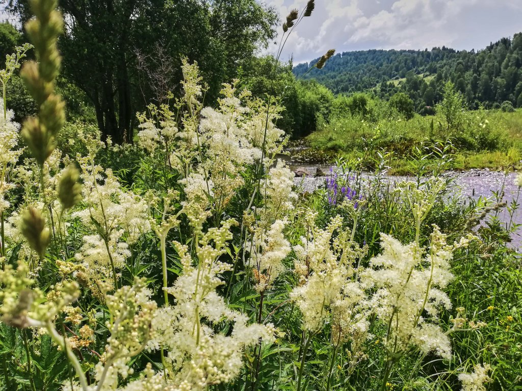 Спорю на что угодно, каждый из вас видел эту траву. Если вы хоть раз летом выезжали на уральскую природу, гуляли по влажным лугам или берегам рек, вы точно встречали высокие кусты с пышными, кремово-белыми метелками цветов, источающими умопомрачительный медово-миндальный аромат.