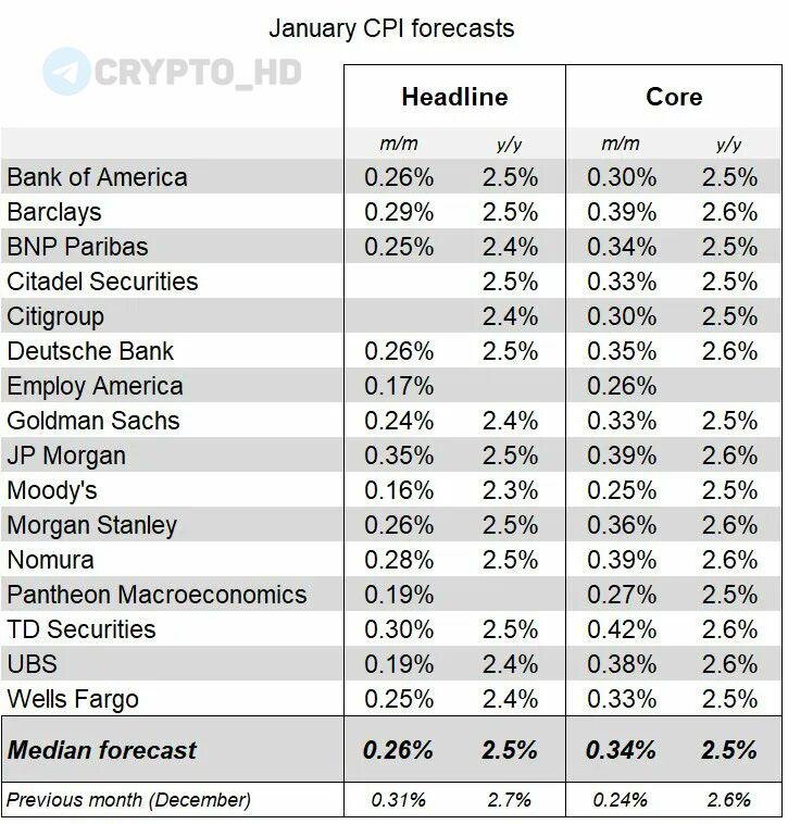 🔥 Прогнозы банков по инфляции в США (CPI).