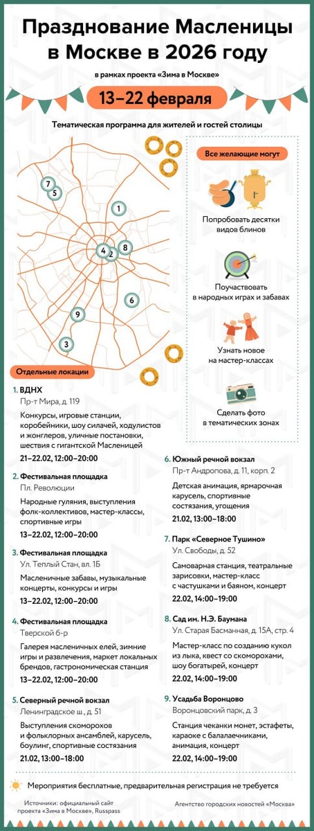 🥞 «Масленица‑2026» в Москве: с 13 по 22 февраля.
