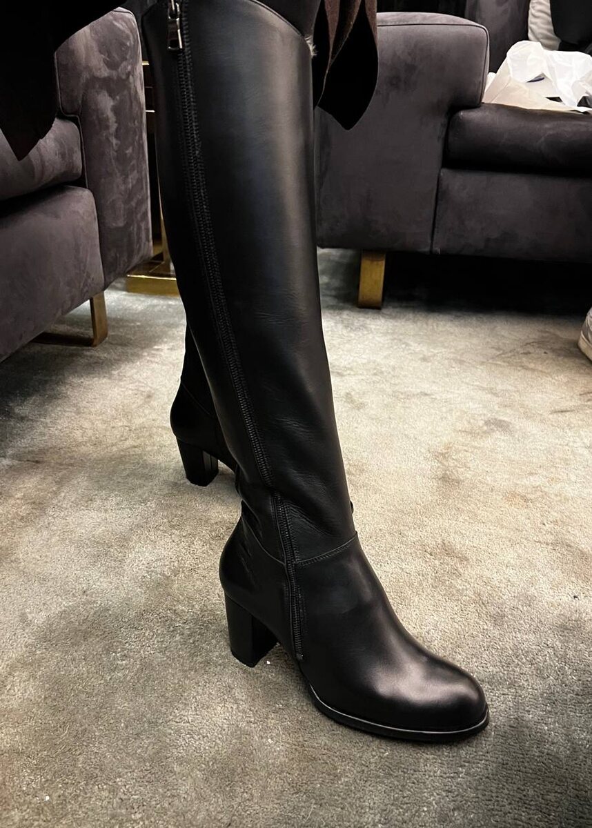 Сапоги из итальянского телёнка с утеплением мехом бобра на каблуке 7см, пошив индивидуально по меркам стоп и ног с созданием индивидуальной