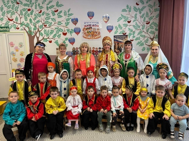Воспитанники «Рябинушки» примерили национальные костюмы и сыграли в игры народов России В детском саду «Рябинушка» села Октябрьский Уфимского района торжественно открыли Год единства народов России. Праздничное мероприятие началось с исполнения государственного гимна Российской Федерации, после чего педагоги дошкольного учреждения исполнили песню «Моя Россия!». Для воспитанников организовали виртуальное путешествие по стране, в ходе которого дети познакомились с многонациональной культурой, традициями и обычаями разных народов. Через музыку, национальные костюмы, танцы и народные игры ребятам показали уникальность и самобытность каждой народности. Воспитанники с большим интересом примеряли яркие костюмы и участвовали в играх «Хайро» (солнце), «Юрта» и «Самый ловкий джигит». В детском саду подчеркнули, что любовь к большой Родине начинается с малого — с уважения к культуре, традициям и языкам народов, живущих рядом. Ранее «Уфимские нивы» сообщали, что в Доме культуры села Михайловка вес