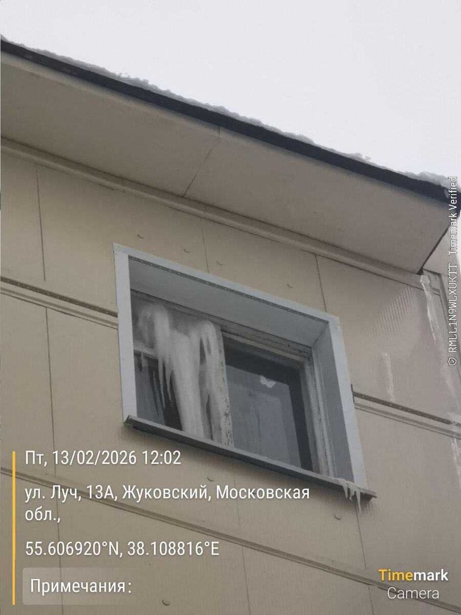 Луч, 13А «Наукоград» почистил кусочек крыши и отчитался, что все расчищено, при этом затопило уже 13 квартир В доме 13А по ул. Луч протечку кровли зафиксировали еще 18 января, затопило два подъезда и 11 квартир, однако это никого не смутило. Жильцы дома отправили множество заявок и столько же жалоб во все возможные инстанции, однако до 5 февраля никаких действий не последовало. В чате губернатора Воробьёва в ответ на очередную жалобу ответил МЦУР: «Уточняем информацию по вашему сообщению. Проинформируем вас в срок до 02.02.2026». 2 февраля ничего опять не случилось. Однако позже сообщили, что 9 февраля работы по очистке крыши от снега и наледи были проведены. В реальности же почистили только кусочек крыши над четвертым подъездом, хотя затопило квартиры первого и второго подъездов, и 50 см свесов. В результате на данный момент затопило уже 13 квартир, в одной из пострадавших квартир течёт между перекрытием и новым утеплением после капремонта, на окне даже образовалась сосулька. Од
