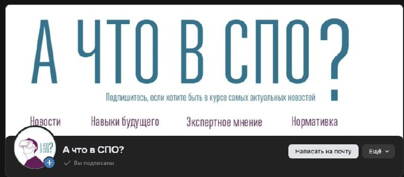 ! Приглашаю Вас присоединиться к группе "А что в СПО?" на платформе ВКонтакте по ссылке https://vk.com/a_chto_v_spo Нас уже там 422 человека и я надеюсь, что Вы также будете среди подписчиков. Данный канал остается функционировать, а также вся экосистема СПО в ТГ. Однако, в связи с замедлением, возможны проблемы в загрузке контента. Остаемся на связи! P.S.: Спасибо, что Вы со мной.