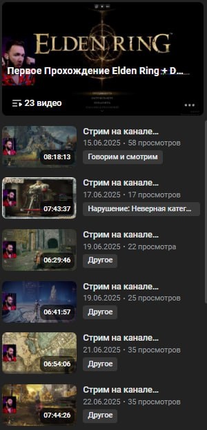 по моему прохождению Elden Ring ❤️ Вообще, нигде записей кроме VK Play нет, поэтому я собрал - ловите Правда там чутка помотать надо, на некоторых записях, там вначале одна игра потом Элден 😭 📱 Первое прохождение ELDEN RING