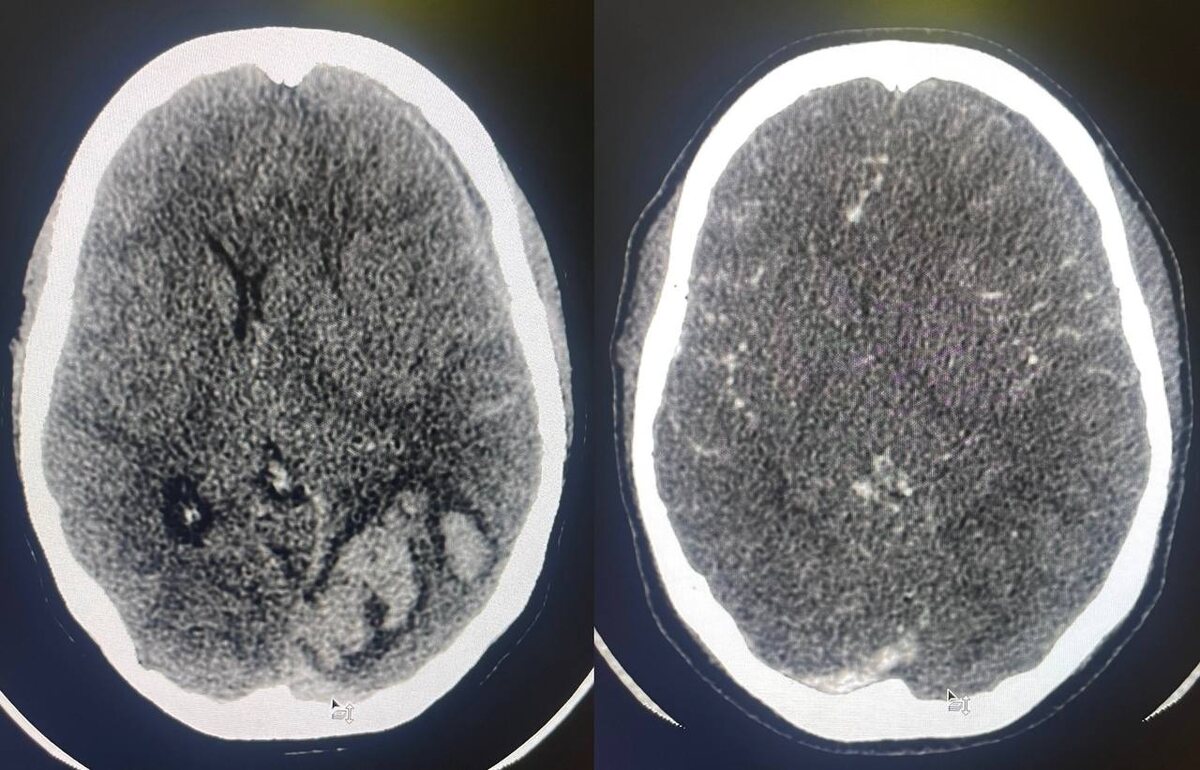 сканирования тоже, особенно при наличии внутримозговой гематомы - которая является одним из непрямых его признаков. На МСКТ: фрагментированная внутримозговая гематома в левой затылочной доле головного мозга. САК. ВЖК. Субдуральная гематома вдоль левого полушария головного мозга с распространением вдоль межполушарной щели и намёта мозжечка слева. Дислокация срединных структур. КТ - признаки формирующегося отёка вещества головного мозга. Дефект контрастирования поперечного, сигмовидного синусов слева и дистального отдела левой внутренней яремной вены. Обратите внимание на фото, как светится тромбированный левый поперечный синус на нативе в сравнении с дефектом контрастирования при введении контрастного препарата. Тот же принцип, что и при окклюзии артерий. Хотя синусы и так могут быть достаточно яркими, так что признак неубедительный. А вот показательную картинку с прямыми и непрямыми КТ - признаками центрального венозного тромбоза добавлю в комментариях. #центральныйвенозныйтромбозкт
