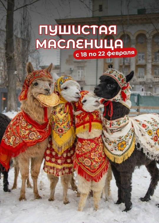 » 🥞🦙 Когда: с 18 по 22 февраля Что в программе: • Экскурсию по вольерам с кормлением альпак, коз и кроликов; • Традиционные масленичные игры, хороводы и конкурсы с аниматорами; • Ароматные блины и горячий чай для каждого. Билеты: https://clck.ru/3RnEki Яркий праздник с аниматорами, где сочетаются народные традиции и живое общение с животными!🦙 ❤️ Бронирование для школьных групп: +7 (800) 333-12-52 Адрес: пр. Сельмаш, 1А (парк им. Н. Островского)