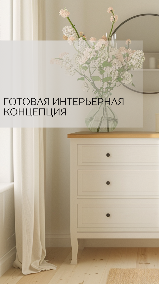 «Посмотрите на этот дизайн. Он вдохновлен скандинавской классикой — те же чистые линии и узнаваемая эстетика Что здесь цепляет? Баланс между основательностью МДФ и визуальной легкостью, которую дают изящные фигурные ножки. Особое внимание — деталям. Контрастная столешница в цвете "ясень" придает мягкий природный акцент белому фасаду. А предметы на нем — круглое зеркало и высокая ваза с цветами — "вытягивают" композицию вверх, превращая обычный комод в стильную инсталляцию. Важно, что здесь установлены направляющие с доводчиками: в спальне тишина превыше всего, и бесшумное закрытие ящиков — это уже стандарт комфорта».