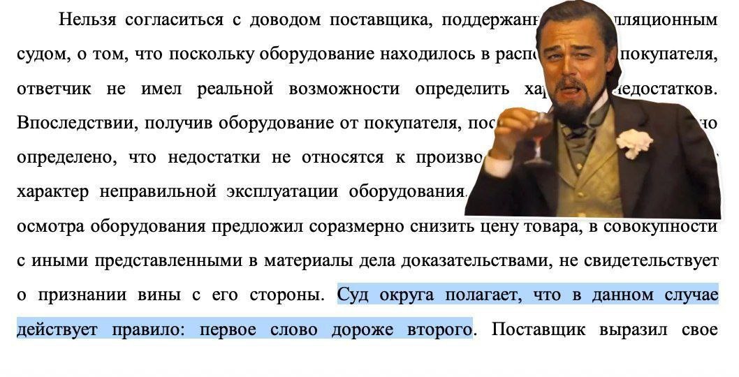 Арбитражный суд Московского округа в своем постановлении официально сослался на принцип «первое слово дороже второго» 👉 Пруф 👈 Формулировка сложных решений простыми словами - это прекрасно. Но настолько спускаться, думаю, не стоит: получается и смешно, и грустно. В любом случае начало положено 😁 Теперь ждем в других решениях формулировок: ➡️ "кто как обзывается, тот сам так называется" о защите чести и достоинства ➡️ "я в домике" о депутатской неприкосновенности ➡️ "говоришь про меня, переводишь на себя" о серых налоговых схемах ❓А какие детские дворовые присказки, применимые к законам вспомните вы?