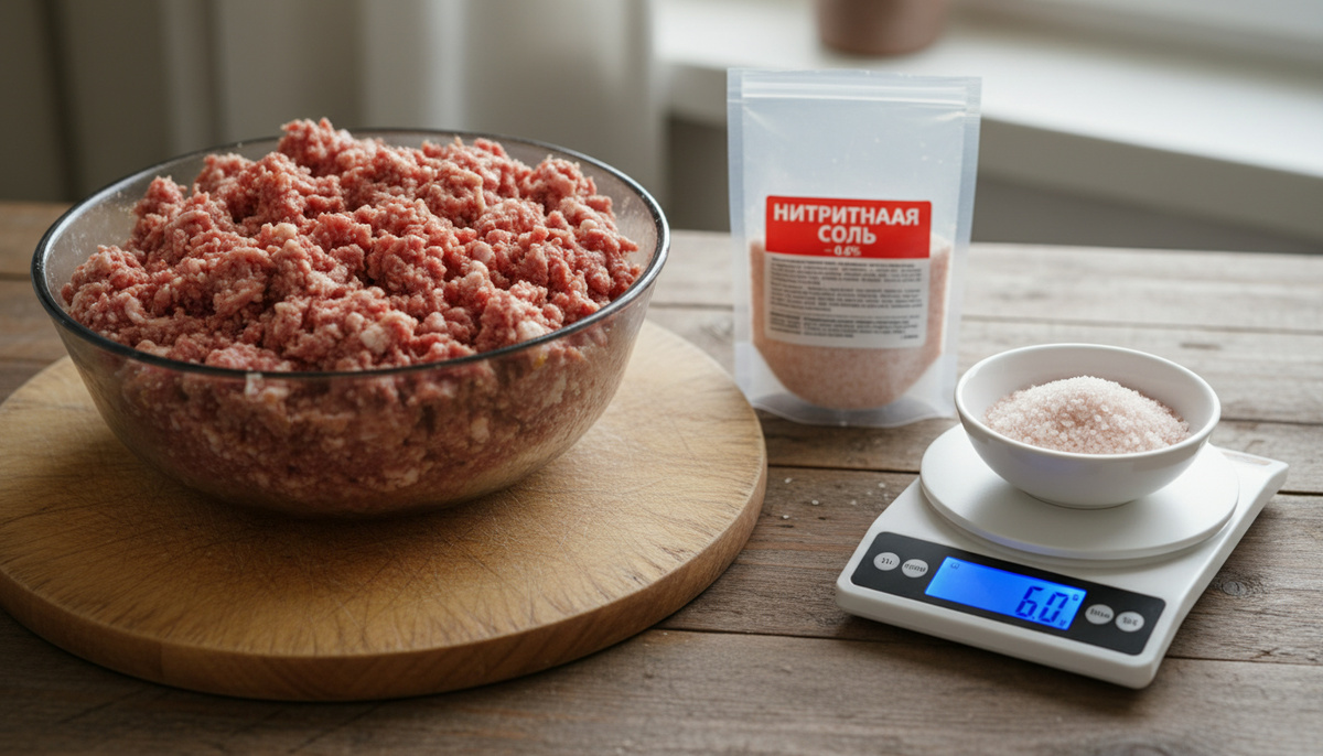 Нитриты — штука двуликая: чуть ошибся — либо рискуешь здоровьем, либо рискуешь всей партией. Особенно легко промахнуться дома, когда меряют ложками и «щепотками». Ниже — понятная дозировка нитритной соли на 1 кг, примеры на 1 и 5 кг и приёмы, чтобы нитрит не оказался «кучкой» в одном месте фарша.