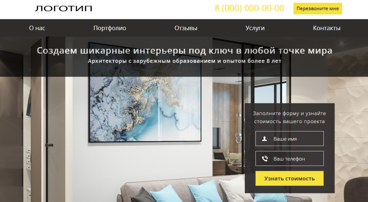 Готовый шаблон одностраничного сайта для дизайнеров, студий и бюро интерьерного дизайна. Позволяет за 1–2 дня запустить онлайн‑приём заявок и увеличить поток клиентов — тех, кто планирует ремонт, перепланировку или обновление интерьера. Подробнее: https://vcard24.ru/m/shop/show/?id=47