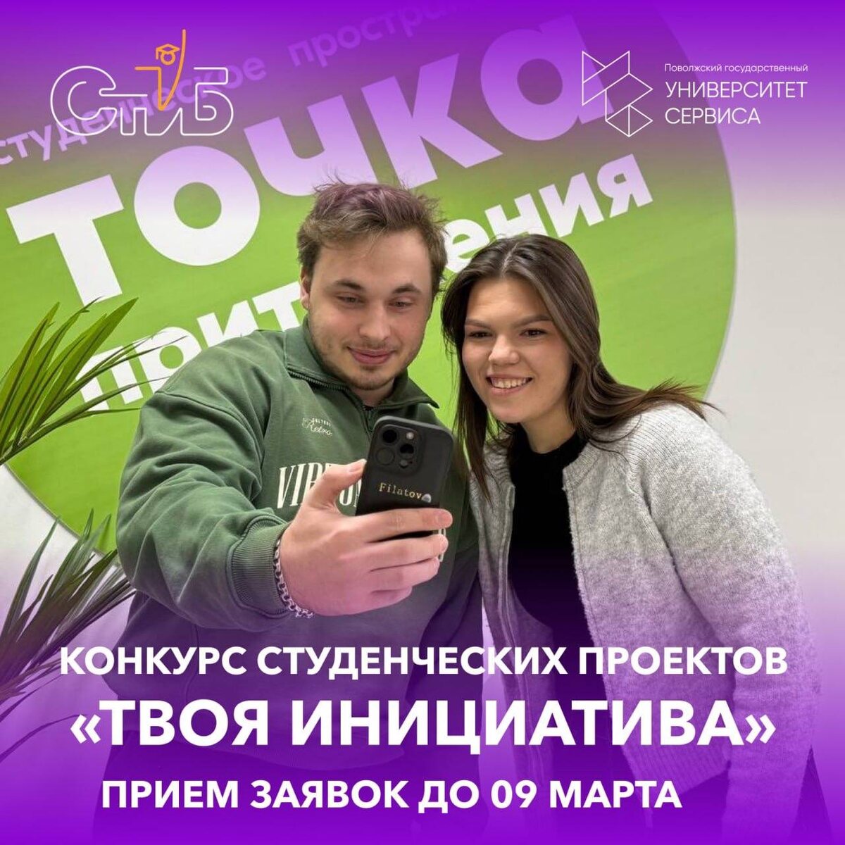 »! Хочешь изменить свой университет к лучшему? У тебя есть крутая идея, как сделать жизнь студентов ярче и комфортнее? Тогда этот конкурс – для тебя! «Твоя инициатива» – это возможность реализовать общественно значимый проект, разработанный тобой и твоей командой, благодаря студенческому инициативному бюджетированию Университета сервиса. ➡️Что это значит? Ты предлагаешь идею, которая улучшит наш университет. Разрабатываешь проект с командой до 5 человек (включая руководителя). Представляешь свой проект жюри. Проекты победителей реализуются на средства университета! ✅Главное: Прием заявок до 9 марта 2026 года (включительно). Защита проектов перед жюри: до 20 марта 2026 года. Онлайн-голосование студентов: после очной защиты. Финансирование: от 5 000 до 100 000 рублей на проект! ⚙️Как принять участие? Соберите команду до 5 человек, разработайте свой проект и отправьте заявку на электронный адрес cvd@tolgas.ru с пометкой «Твоя инициатива». Подробности и правила участия в конкурсе см