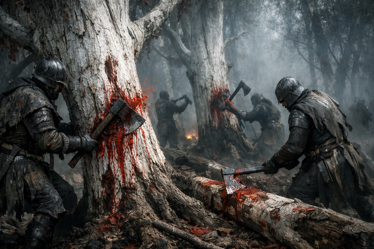 Для строительства Харренхолла требовалось колоссальное количество ресурсов. Камень возили из Долины, а дерево... Дерево брали прямо из священных рощ Речных земель. Тысячи Чардрев — белых деревьев с красными листьями, которым поклонялись Первые Люди, — были срублены на балки и ст