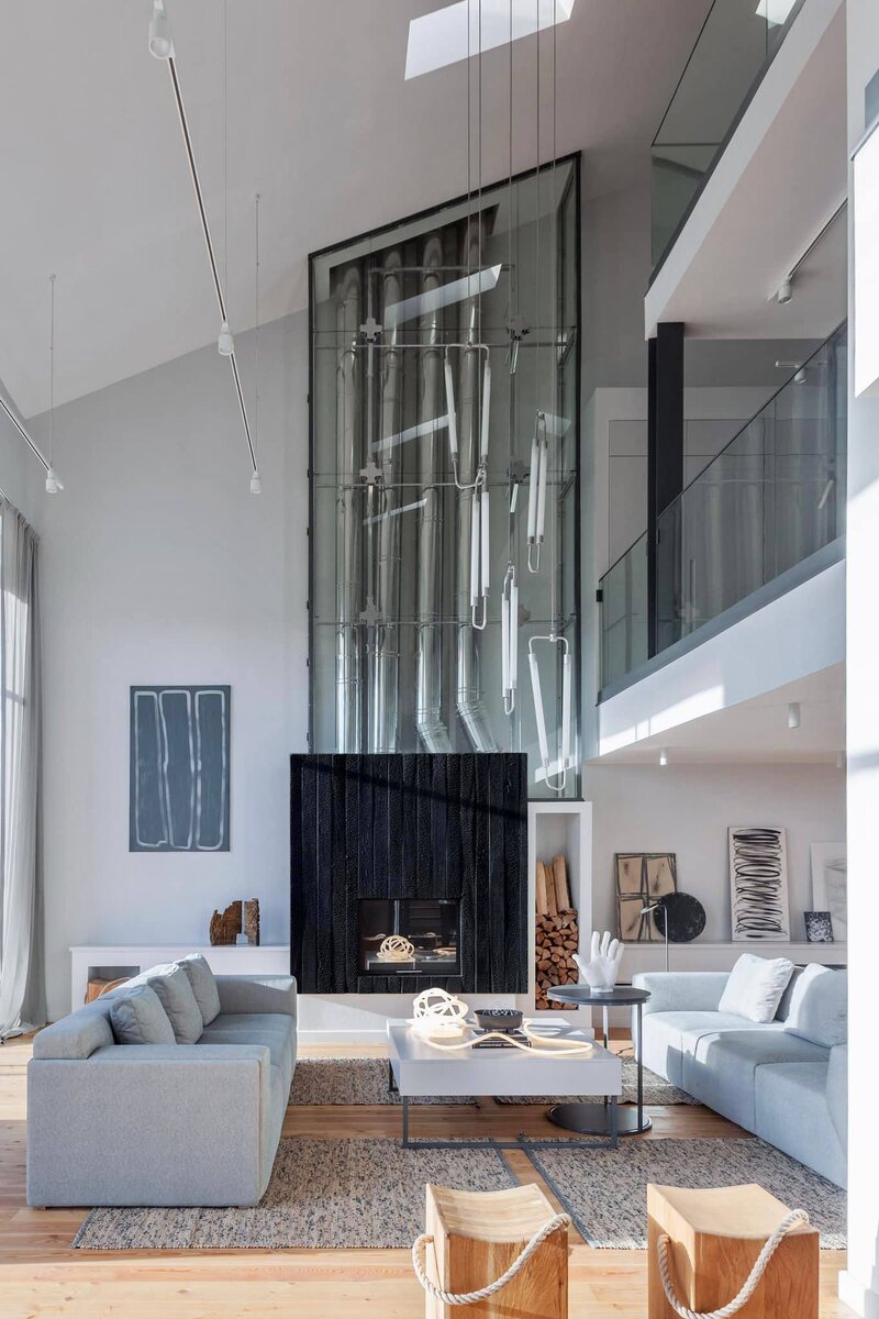 На Яузе, в доме, архитектуры @skuratov_sergey , стоит камин из обожженного дерева. Работает, дарит тепло домочадцам.