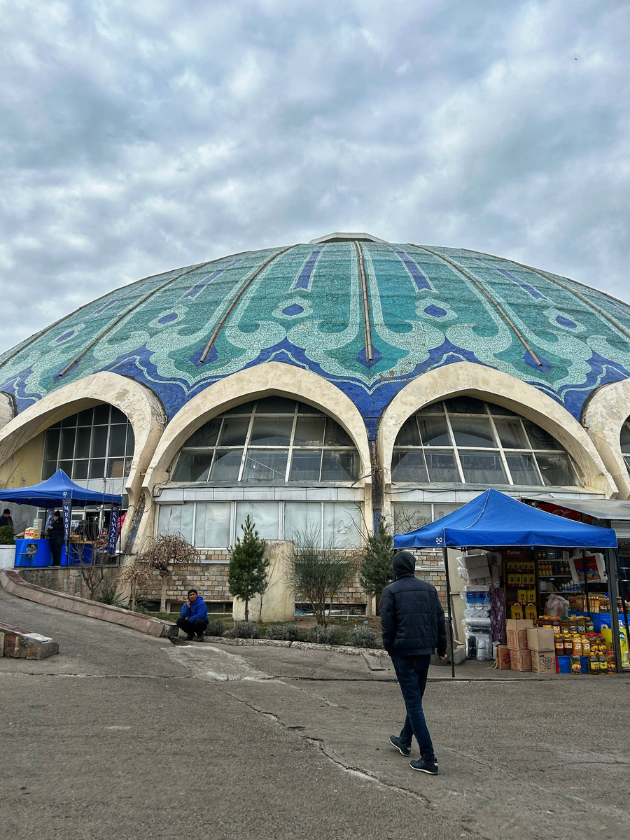 Я приехала на базар Чорсу - один из крупнейших базаров Узбекистана. Не такой вылизанный, как туристический Алайский базар, он намного больше пропитан духом востока. Откуда такое название? "Чорсу" значит "4 стороны", ну или... Перекресток. Вот и стало ясно, откуда французский Сarrefour и российский "Перекресток" от X5 взяли название своих сетей!) Наверняка в креативной команде были выходцы из Узбекистана! Если выходить со станции метро Чорсу - настроение базара ощущаешь сразу. Прямо тут сидят первые торговцы - предлагают сухофрукты, орехи, лепёшки, фрукты. С одной стороны от метро автостанция, где сразу можно подкрепиться пловом и лепешками, пока ждешь автобуса, А с другой начинаются ряды базара, которые украшены мозаикой, тарелочками… Красивый фонтан зимой не работает) На базаре можно купить все, от носочков до головы коровы) чем ближе в к красивому основному зданию, тем выше цены, но и тем красивее выложен товар. Ну и в центре тебе точно ответят по-русски на вопрос «сколько стои