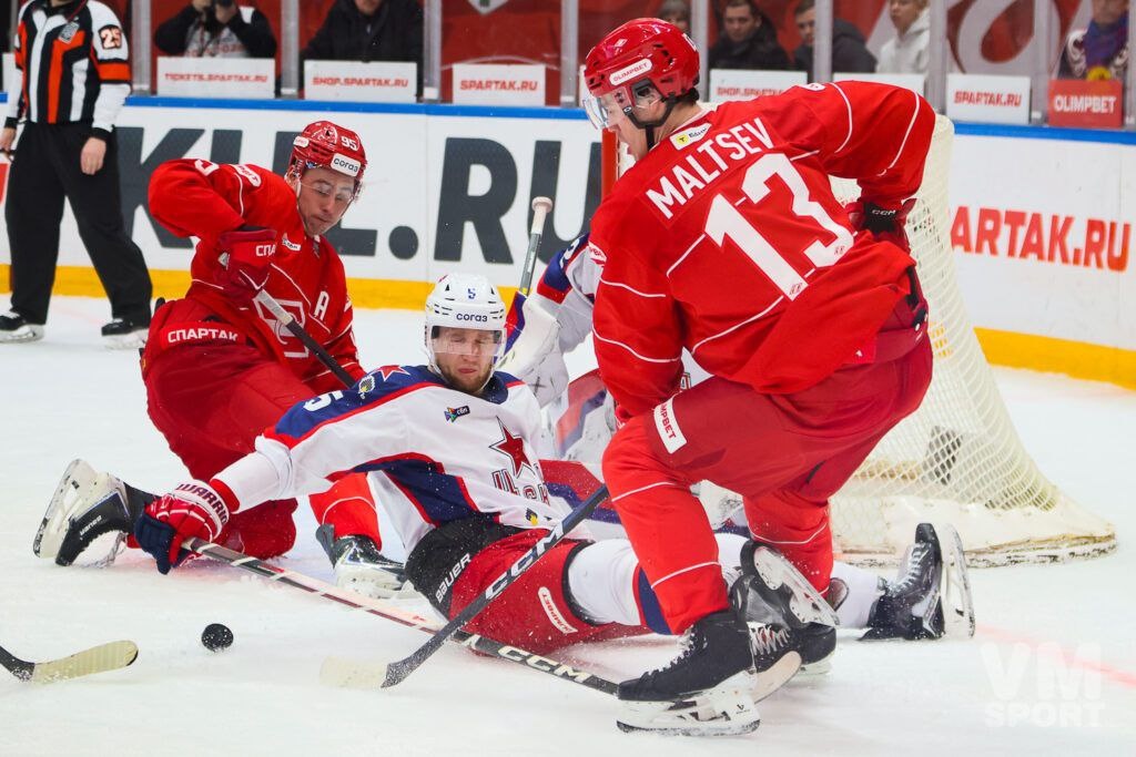 Хотя голы — это заслуга всей пятëрки, всë-таки когда обе шайбы забивают защитники, а атака «отмалчивается» — это не очень хорошо. Против ЦСКА должно было быть ещë сложнее. Во-первых, подопечные Никитина набрали ход, одержав шесть побед подряд. Во-вторых, забуксовавшей спартаковской атаке должна была противостоять одна из лучших оборон лиги. Красно-белые, хотя и начали матч активно и бодро, умудрились в дебюте дважды неудачно сыграть в защите и пропустить. Сначала Полтапов объехал ворота и сделал пас в центр на Бучельникова, который отправил шайбу в верхний угол ворот, а затем он же развернулся у борта и сделал пас в центр, Соркин обработал шайбу и с кистей бросил в ближнюю девятку. В обоих ситуациях «красно-белые» откровенно провалились на своëм пятаке. Соперник, кстати, это учëл и старался раз за разом нагружать именно эту зону прострелами и проходами. Почти всегда это было опасно. Оборона пожарила, но всë же избежать худшего смогла. Что касается атаки, то града моментов у ворот С