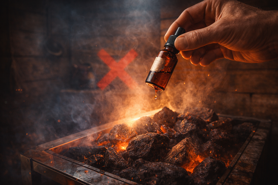 Высокая температура разрушает структуру масел и может образовывать раздражающие соединения. Кроме того, это портит камни и может испортить атмосферу резким запахом.