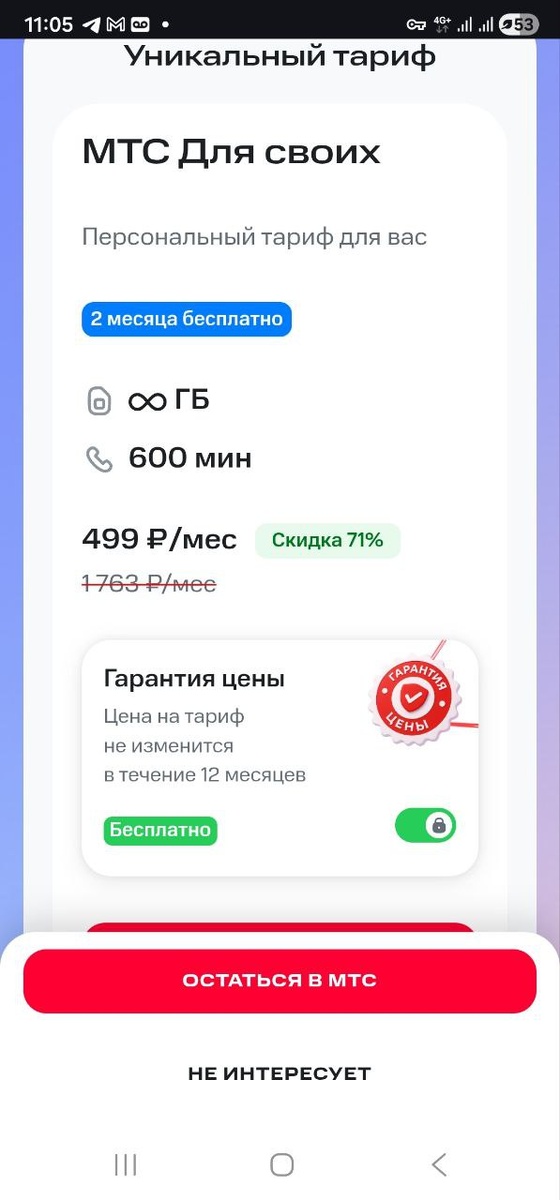 МТС в очередной раз решил поднять мне тариф и отменить скидку и ценник с 800р сразу становился 1200р, как то я посчитал что это не гуманно, а тут еще альфабанк подсуетился и сделал предложение с безлимитным интернетом в тарифе за 500р. Оформил получение симки альфамобаил с переносом номера в два клика. На следующий день курьер мне привез сим карту альфа мобаил. И в этот же день МТС прислал заманчивое предложение чтобы я от них не уходил, сделал скидку на тариф и два месяца подарили бесплатного пользования. Не понимаю, почему я не сделал этого раньше когда с 500р тариф стал 800р. Как бы и ладно, повысили тариф да и ладно, не столь существенные траты, но когда номеров не один и даже не 5шт становится заметно. #лайфФак - пользуйтесь.