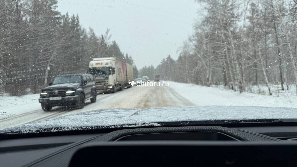 Фуры стоят на трассе Чита — Забайкальск из-за снегопада