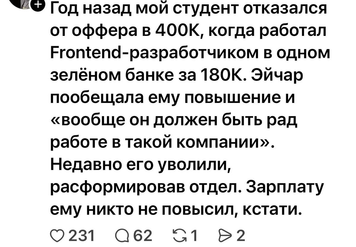 Чем лучше работает ИИ, тем меньше нужно программистов, ибо скорость разработки кратко растет. Это так пишут умные люди...
