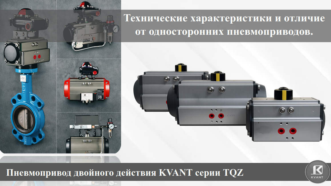 Согласно техническому описанию компании KVANT, пневмоприводы серии TQZ обладают следующими ключевыми параметрами: