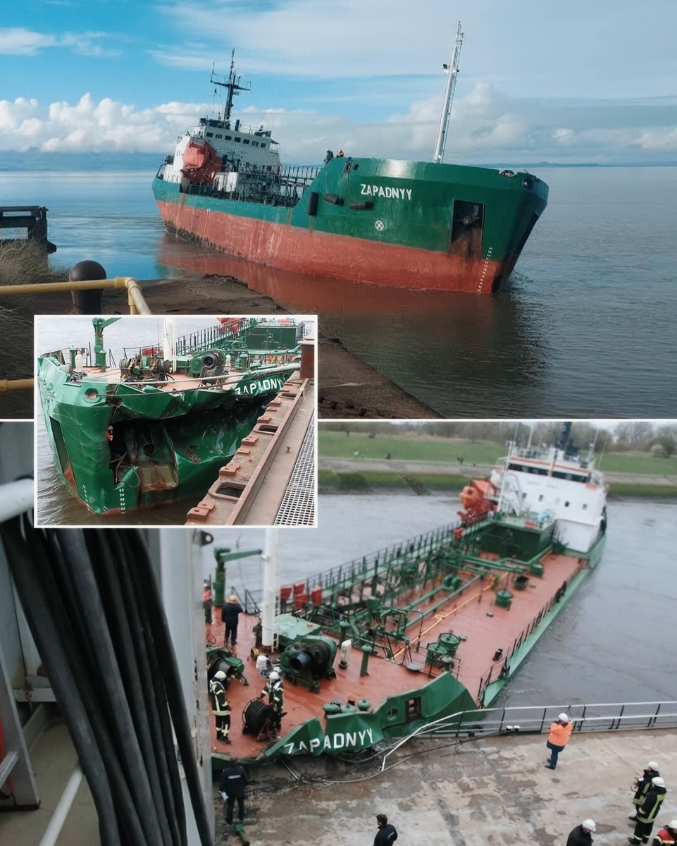 Именно это произошло с «Западным». Уходя от столкновения с нахалом, танкер воткнулся в плавучий док. Не просто чиркнул, а пробил себе нос и снёс многотонную конструкцию, словно кеглю.
