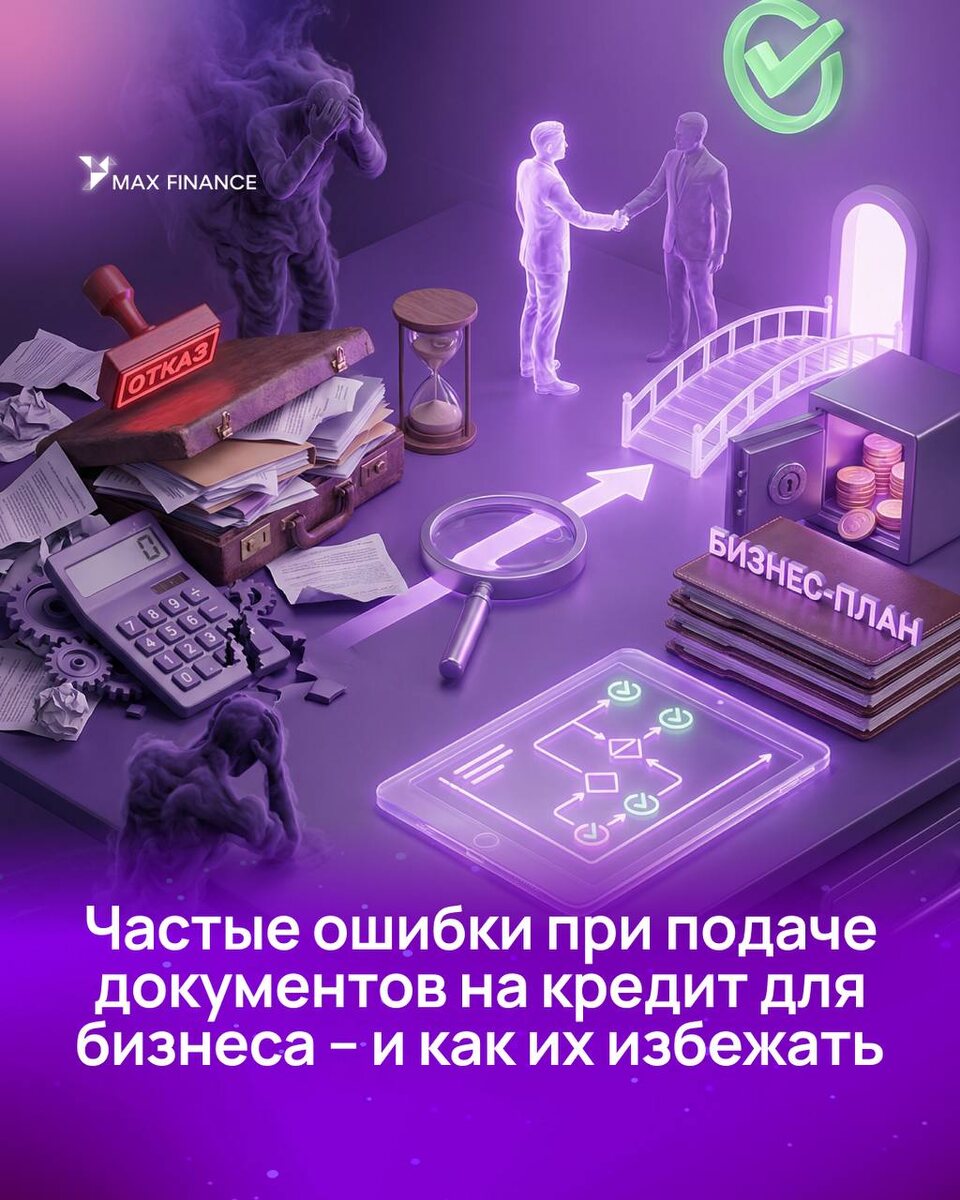 📄Чтобы получить кредит на бизнес-цели, важно правильно подготовить документы, чтобы банк не отказал. При подаче заявки на бизнес-кредит предприниматели и руководители юрлиц допускают следующие недочёты: 1️⃣Ошибки в финансовой или налоговой отчётности, представление недостоверных или некорректных данных. Если данные в бухгалтерских формах, налоговой декларации и управленческих отчетах не совпадают, система анализа рисков отметит заявку для дополнительной проверки. Это увеличивает срок рассмотрения и снижает вероятность одобрения. Перед подачей заявки важно убедиться, что отчетность подана в срок, отражает актуальные данные и совпадает с информацией, направленной в ФНС. Также стоит проверить отсутствие задолженности по налогам и сборам. 2️⃣Отсутствие нужных бумаг. Комплект должен соответствовать требованиям банка, иначе возможен отказ. 3️⃣Несоответствие правилам предоставления данных, например неправильный формат загружаемых файлов. ⚠️Важно не только ЧТО подать, но и КАК это сдела