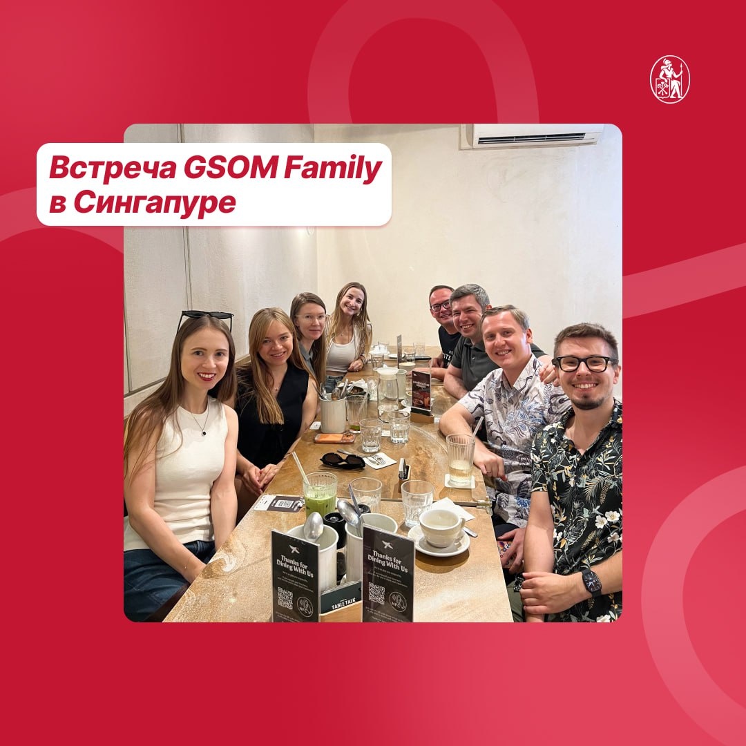 Поэтому наши выпускники готовы встречаться и общаться в разных точках земного шара. В этот раз реюнион прошёл в «городе львов» – месте с самой большой плотностью долларовых миллионеров на тысячу жителей. Догадались где? 🏙 Если вы узнали Сингапур, вы абсолютно правы! Именно здесь выпускники разных лет собрались, чтобы обсудить новости, поддержать друг друга и, конечно, поделиться успехами. И даже провели мини-экскурсию для Юлии, выпускницы, которая была проездом из Таиланда в Дубай. Ей показали красоты города со смотровой площадки небоскрёба The Pinnacle. Как говорит организатор встречи, Кирилл Кокоулин (выпускник магистратуры, программа MIB 2011): «Наконец-то в Новом году удалось собраться нашим GSOM Family office в Сингапуре: поболтать, обменяться новостями и просто насладиться моментом, никуда не спеша». ❤️ Так выглядит настоящее сообщество — где бы вы ни были, всегда найдётся кто-то из GSOM Family рядом. Готовы к следующей встрече? Может быть, она пройдёт в вашем городе!
