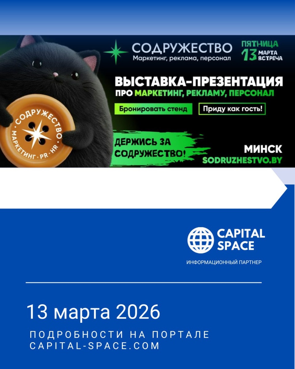 ». Capital Space информационный партнер выставки. Подробности на нашем сайте: https://capital-space.com/antiprimety-v-biznese-na-vystavke-sodruzhestvo-ili-pochemu-marketing-verit-tolko-v-xoroshie-primety/ Это одна из самых ожидаемых отраслевых встреч для маркетологов, HR- и PR-специалистов, а также владельцев бизнеса, которые принимают решения на основе практики и реальных кейсов. Формат — большой клиентский день. Поставщики маркетинговых, HR- и PR-решений встречаются с заказчиками в открытом диалоге: без формальностей, с конкретикой и живым общением. 🎯 Тема встречи — «Антиприметы в бизнесе». Никаких суеверий — только рабочие инструменты, реальные кейсы и решения, которые действительно дают результат. На площадке: ✔️ более 20 партнеров ✔️ панельные дискуссии с экспертами ✔️ обсуждение брендинга, внутренних процессов и новых подходов к работе с клиентами ✔️ тренды и практические выводы для бизнеса 🎤 Традиционный Открытый микрофон с блогерами — честный разговор без глянца. Бизнес у