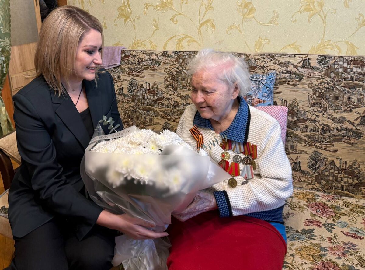 Кузьменко. Екатерине Петровне — 98 лет. Мы давно её знаем и искренне уважаем. В этот памятный день она вновь вспоминала военные годы: бомбёжки, голод, тяжёлый труд и восстановление разрушенного края. Рассказывала, как после освобождения засеивали выжженные поля, поднимали предприятия, строили школы и возвращали жизнь в города. Особенно тронули её слова о хлебе — как в голодные годы хотелось съесть горсть зерна, но нельзя было, потому что оно было обработано химикатами. О том, как ценили каждую каплю воды и каждую крошку. И о том, с каким упорством люди учились в школах рабочей молодёжи — за одной партой сидели и дети, и взрослые. Екатерина Петровна уверена: как и 80 лет назад, страна справится с любыми испытаниями. Передали ветерану поздравления, цветы и угощения. Низкий поклон за труд и стойкость. Здоровья и долгих лет жизни Екатерине Петровне.