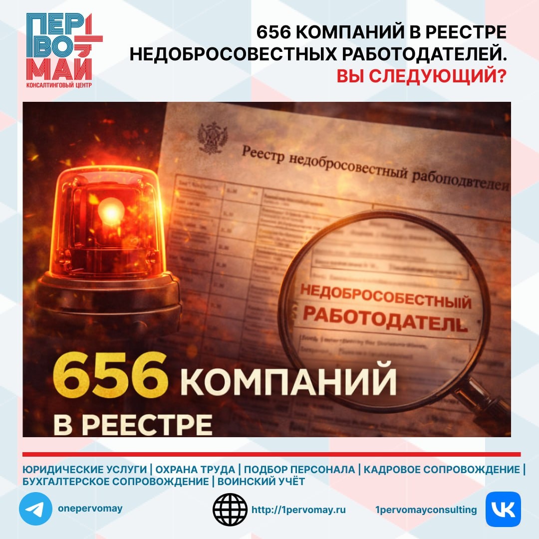 ВЫ СЛЕДУЮЩИЙ? Роструд ведёт реестр работодателей с нелегальной занятостью с 2025 года. На начало февраля 2026-го там уже 656 компаний. И список растёт. ⚪️ГДЕ ЧАЩЕ ВСЕГО ЛОВЯТ Торговля, общепит, строительство, логистика, клининг, охрана — топ отраслей по нарушениям. Почему? Малый бизнес, жёсткая конкуренция, давление на ФОТ. Работодатели экономят через "серые" зарплаты и неоформленных сотрудников. 💡Результат: реестр, штрафы, проверки, репутационные потери. ЧТО ДАЁТ РЕЕСТР ❓ Попадание в реестр — публичная метка для потенциальных сотрудников и контрагентов. Это не просто запись. Это сигнал: с этой компанией работать опасно. От 10 до 15 миллионов человек в России трудятся неофициально. Государство намерено это изменить. Реестр — один из инструментов. ➡️ ЧТО БУДЕТ ДАЛЬШЕ Контроль усиливается. ФНС, СФР и ГИТ делятся данными. Один сигнал — и проверка идёт. Вопрос не в том, придут ли к вам. Вопрос в том, что они найдут. 💡 ВЫВОД Неоформленные сотрудники, "серые" зарплаты, самозанят