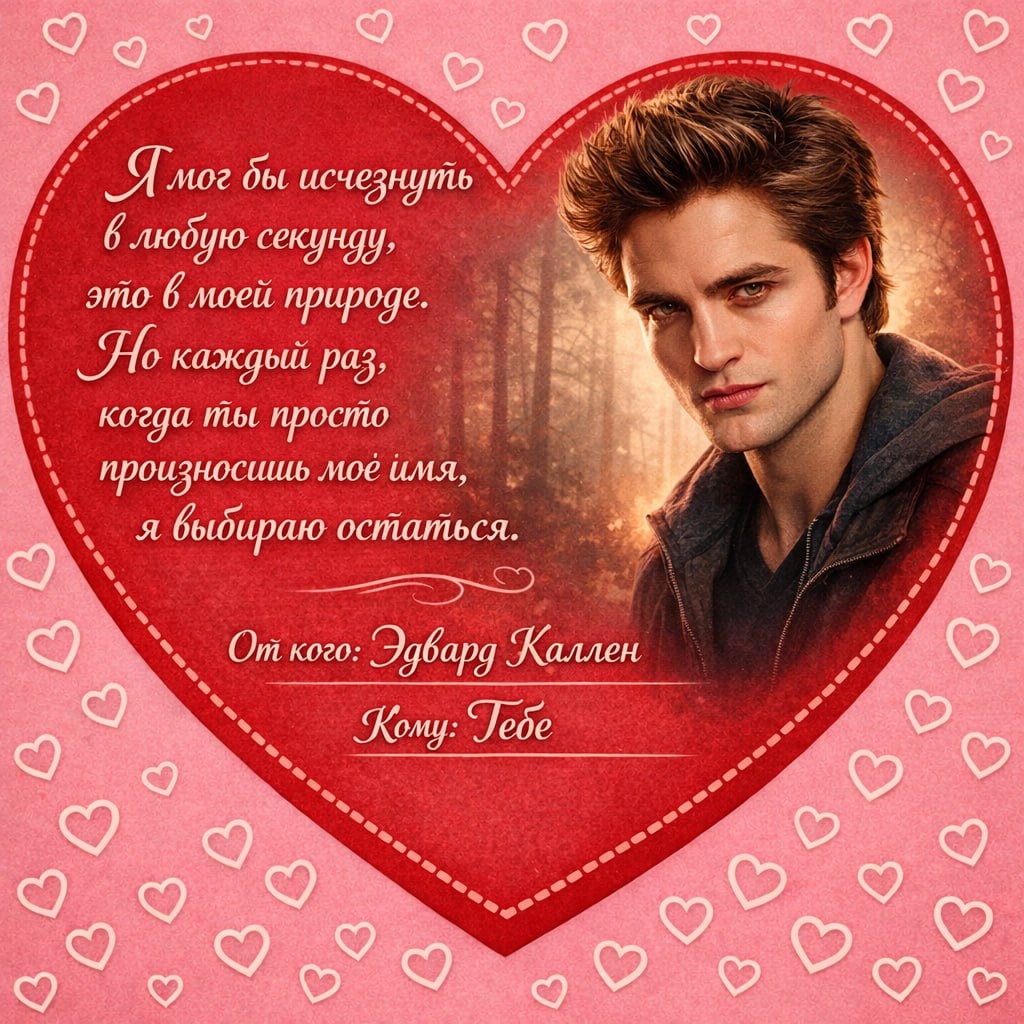 💗 Я создала валентинки с визуально узнаваемыми героями, чтобы мы поздравили вас, дамы! Правила простые: 🌸Листайте карточки и выбирайте «свою». 🌸Пишите в комментариях: 1) кто попал в сердце 2) кто ваш идеальный книжный мужчина и почему? А дальше можно официально: сохранять, пересылать, кидать «тому самому человеку» или просто пополнять личный список книжных крашей. Обнимаю вас виртуально! #настроение_в_переплете #романтика