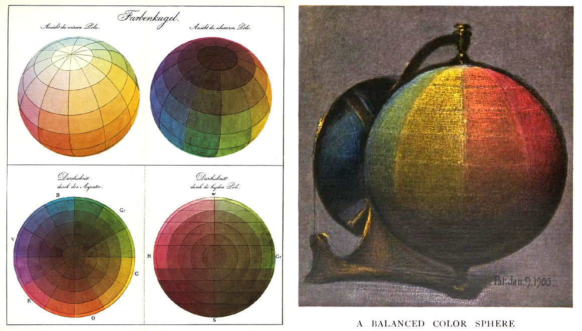 Рунге первым предложил рассматривать цвет не как плоскую радугу, а как сферу (глобус). В этой модели по экватору расположены чистые спектральные цвета (желтый, красный, синий и их производные). К северному полюсу цвета «белеют», приближаясь к белому — символу рождения, чистоты, божественного света. К южному полюсу они уходят в черноту — в смерть, бездну, трагедию .