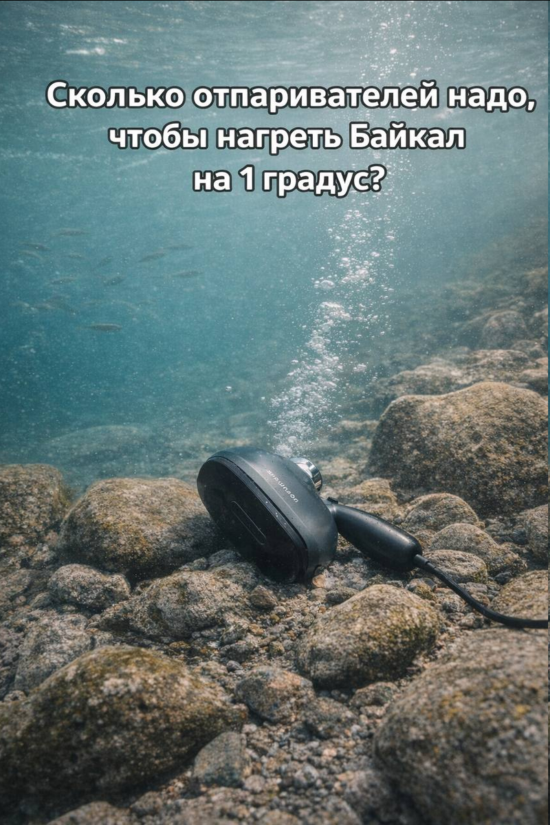 Иногда полезно сравнить бытовую технику с чем-то по-настоящему гигантским. Например: а если взять мощный отпариватель 4700 Вт — сколько их нужно, чтобы нагреть озеро Байкал хотя бы на 1°C? Спойлер: много. Очень много. ⸻ Шаг 1. Насколько большой Байкал? Объём Байкала — примерно 23 600 кубических километров воды. 1 кубический километр = 1 триллион литров. Значит: 23 600 000 000 000 000 000 литров воды. 1 литр воды ≈ 1 кг. То есть масса воды — 2,36 × 10¹⁹ килограммов. ⸻ Шаг 2. Сколько энергии нужно, чтобы нагреть воду на 1°C? Формула простая: Чтобы нагреть 1 кг воды на 1°C, нужно примерно 4200 джоулей. Значит для Байкала: 2,36 × 10¹⁹ × 4200 ≈ 9,9 × 10²² джоулей. Это почти 10²³ джоулей энергии!!! Для понимания масштаба: это больше, чем всё человечество потребляет за год!!! ⸻ Шаг 3. Что даёт один отпариватель 4700 Вт? 4700 Вт = 4700 джоулей в секунду. За 1 час: 4700 × 3600 = 16 920 000 джоулей. Один отпариватель за час даёт ~1,69 × 10⁷ джоулей. ⸻ Шаг 4. Делим Байкал на отпариватели Нужно ~9