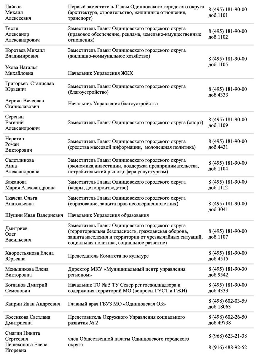 Звенигород, ул. Московская, 11, Культурный центр имени Любови Орловой. Участие в мероприятии примут заместители главы, представители МКУ «МЦУР», Одинцовской областной больницы, министерства чистоты Московской области. Запись на личный приём ведётся в рабочие дни с 09.00 до 18.00 (понедельник-четверг), с 09.00 до 15.30 (пятница), обеденный перерыв: 13.00-13.45. В случае невозможности дозвониться по указанным телефонам - звонить по тел. 8-495-181-90-10, доб. 7951 или оставить заявку на обратный звонок по ссылке. ☑️@Администрация Одинцовского округа