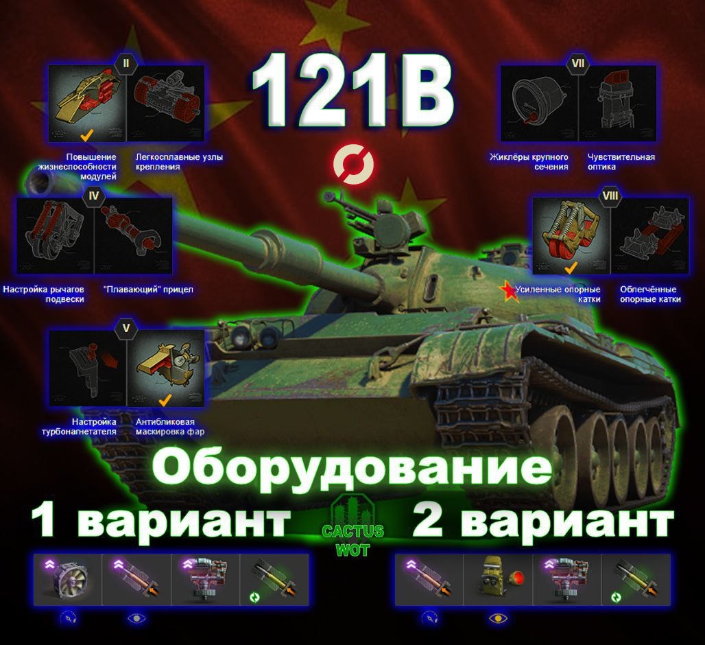 🏥Средний танк универсальный 10 уровень. Китай. 🔼Полевая модернизация на картинке🔼 ТТХ: Калибр (мм)105 Урон (ед.)390 / 390 / 480 Бронепробиваемость (мм)261 / 350 / 105 Скорострельность орудия (выстр/мин)7.41 Заряжание орудия (с)8.10 Скорость гориз. перевода прицела (град/с)42 Углы поворота башни (град)180 / 180 Углы вертикальной наводки (град)-5 / 18 Время сведения (с)2.20 Разброс на 100 м (м)0.33 Средний урон в минуту (ед/мин)2888.89 Боекомплект (шт.)50 Живучесть 494 Прочность (ед.)1950 Бронирование корпуса (лоб/борт/корма в мм)135 / 80 / 60 Бронирование башни (лоб/борт/корма в мм)275 / 200 / 60 Время ремонта ходовой (с)12.03 Мобильность 630 Масса (кг)40000 Мощность двигателя (л. с.)700 Удельная мощность (л. с./т)12.87 Макс. скорость / задний ход (км/ч)55 / 25 Скорость поворота шасси (град/с)50 Незаметность 264 Неподвижной машины (%)0.26 В движении (%)0.20 Наблюдение 646 Обзор (м)420 Дальность связи (м)750 ➕Плюсы: отличное бронирование; скорость; точность; бронепробитие; урон в м