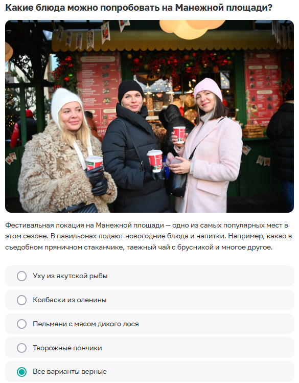 «Зима в Москве»: городские гастрономические площадки». Правильные ответы викторины на сайте Активный гражданин