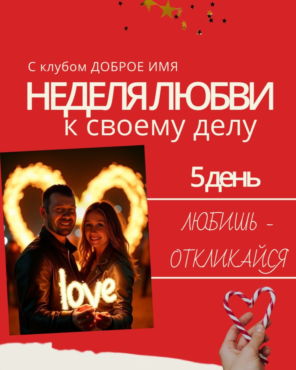 День 5. Любишь — откликайся 💞 🎙 СЕГОДНЯ В 15:30 МСК - прямой эфир О чём будем говорить: ВКонтакте. Сюда кину ссылку для входа ✅ Разберём ваши результаты теста «Колесо голоса» ✅ Покажу, как писать посты, которые не читают, а чувствуют кожей ✅ Дам ту самую фразу-переключатель из «эксперта» в «человека» 🏆 И САМОЕ ВАЖНОЕ: Мы с Олегом объявим победителя Недели любви. Месяц в клубе «Доброе Имя» + «Мастерская контента» — тому, кто выполнил все 5 заданий и не побоялся быть настоящим. 🎁 ВХОДНОЙ БИЛЕТ: Тест «Колесо голоса» 👉 Он уже ждёт вас в предыдущем посте 👉 5 минут — и вы узнаете, какой голос у вас спит 👉 В эфире покажу, как его разбудить и ответ на вопрос в комментариях. МЫ ЖДЕМ ВСЕХ❤️ Как вам такой план на сегодня?