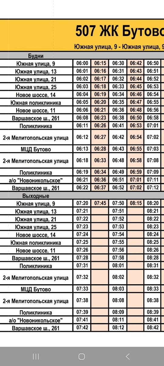 Актуальное расписание движения автобусов по маршруту номер 507 от ул.Южная, д.9