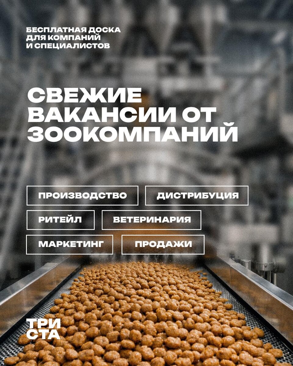 Не так давно мы писали, что запускаем доску вакансий и готовы публиковать предложения от компаний зоорынка. Вы откликнулись – и нам уже прислали первые позиции. Торговый представитель Компания ИП Гурьянова В.М Бренд “UMAPE” – натуральные лакомства для собак и кошек собственного производства Задача – развитие продаж на территории, работа с клиентами, увеличение объёма заказов. ЗП: 60000 рублей в месяц + 10% от каждого заказа Регион: Москва и Московская область Контакты: info.umape@mail.ru +7 926 156 98 98 Вероника Ассистент ветеринарного врача Сеть ветеринарных клиник «Зоомедик» Требуются ассистенты в 5 филиалов. График можно выбрать. Работа в действующей сети клиник с потоком пациентов. ЗП: до 10000 рублей за смену Регион: Москва Контакты: +7 905 530 58 05 @HRD_Zoomedic hr.zoomedic@yandex.ru Напоминаем: размещение бесплатное. Присылать можно вакансии из любого сегмента зообизнеса: контрактное производство, дистрибуция, розница, ветеринарные клиники, склады, маркетинг, продажи,