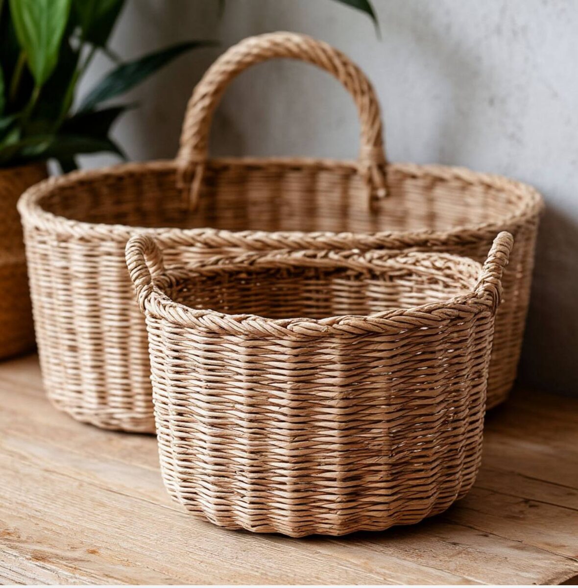 Казалось бы, просто корзинка, но она моментально «прячет» визуальный шум. В одной у меня лежат зарядки и провода, в другой — ключи и чеки в прихожей.