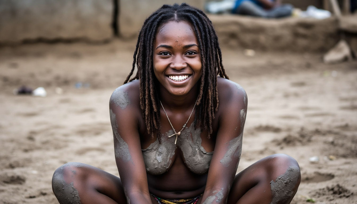 - Обмазывание. Девушки полностью покрывают кожу смесью глины и золы. Это похоже на поведение диких животных, которые валяются в грязи, чтобы отпугнуть паразитов. Глина создаёт защитный слой, который «приклеивает» к себе насекомых и грязь.
