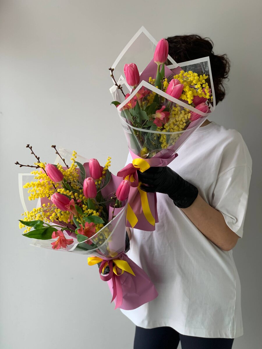 Сегодня мы можем повторить для вас самые необычные букеты с тюльпанами и мимозой.