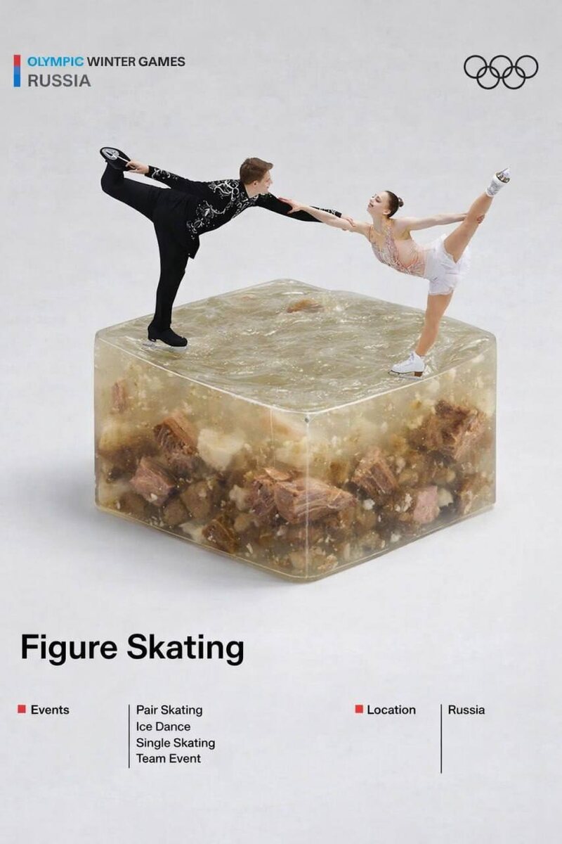 ! Итальянские дизайнеры сделали серию ИИ‑постеров к Олимпиаде в Милане, скрестив спорт с национальными блюдами. Получилось красиво, концептуально, вкусно. Наши креаторы, конечно, не остались в стороне — и ответ получился.... максимально в духе культурного кода. Мороженое🇮🇹 vs Холодец 🇷🇺 Фигуристы на пьедестале из гигантского холодца — это не просто арт. Это метафора. Это манифест. Это наш кулинарный код - на каждое 1 января. И, конечно, любовь к странным, но родным блюдам. Мороженое растает. Холодец вечен. Да? Да! #сказочныеистории #олимпиада2026 #олимпийскиеигры