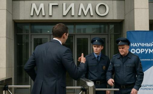 Форум проходил на площадке Международного научно‑экспертного мероприятия. Вход — строго по спискам и предварительной регистрации. По данным организаторов, фамилии Олега в этих списках не оказалось. На входе ему отказали.