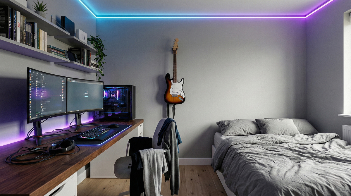 - Рабочая зона: Стол превращается в кибер-станцию. Нужна глубина столешницы от 70–80 см (чтобы поместились локти и монитор был на безопасном расстоянии).
