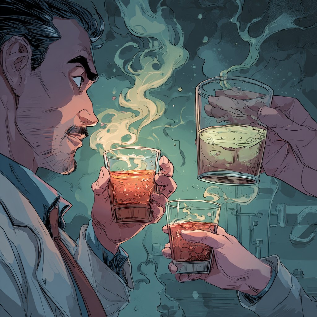Он подставил стакан, и запах усилился, ударив в нос химической волной. Цвет в сосуде казался гуще, насыщеннее.