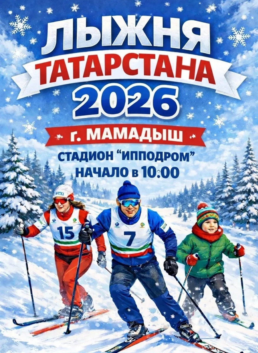 » -- 14 февраля в Мамадыше состоятся массовые соревнования «Лыжня Татарстана – 2026», которые пройдут в рамках республиканского проекта «Зима в Татарстане». На старт выйдут представители образовательных учреждений, а также трудовые коллективы организаций и предприятий города. Спортивный праздник объединит любителей активного отдыха и здорового образа жизни разных возрастов. Мероприятие пройдет на лыжной базе «Стадиона-Ипподрома». Торжественное открытие запланировано на 10:00. Организаторы приглашают жителей и гостей города поддержать участников и присоединиться к массовому лыжному забегу. 6+ ✅ Подписаться l Мы в Max